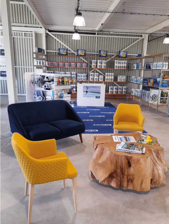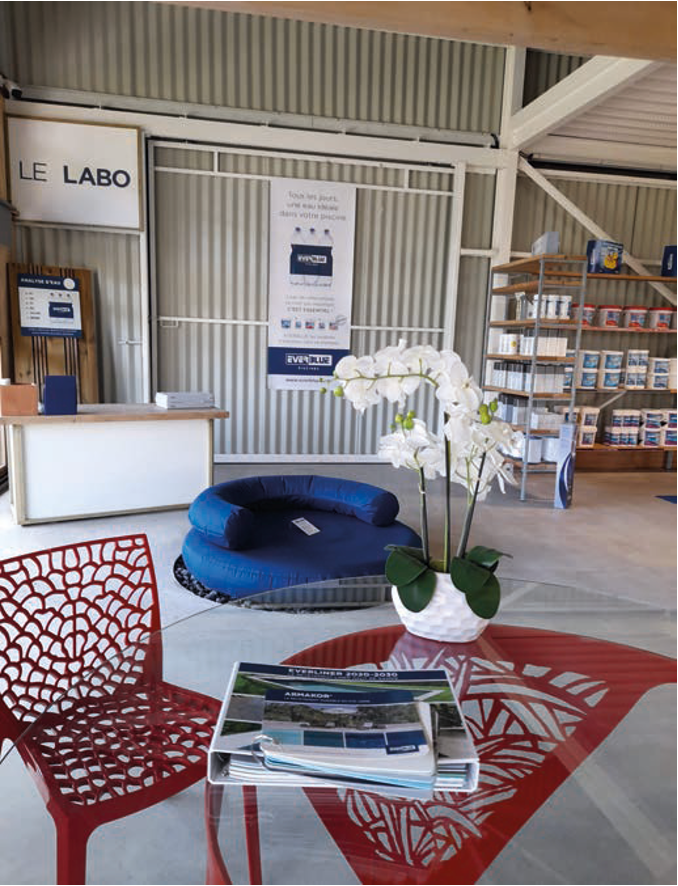 Nous comptons aujourd’hui 30 salariés. Le pôle piscine repose sur trois personnes totalement dédiées à cette activité, mais nous mobilisons aussi des maçons, menuisiers et autres corps de métiers de manière transversale. Nous avons deux implantations : notre siège social à Ploemeur, et un showroom de 250 m² à Ploeren, près de Vannes, ouvert en 2014. Ce showroom est consacré à l’univers de la piscine et du spa, avec un espace d’accueil client et une présentation de produits et équipements.